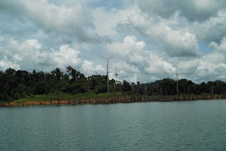 亚齐奎笼最大的特色就是“大”,钓鱼客可以各自在不同的角落施展他们的技能,又可和朋友独占一个角落,远离他人。它不是一间四角的古老亚答屋,而是七角?八角?九角。。。总之关系复杂的多角------旅游胜地。 爱慕它的岛屿将它重重围绕,犹如众星拱月,也为它遮挡狂风巨浪,让这羞涩淳朴的姑娘亭亭玉立在水中央,吐呐宇宙的气息。我说这美景是千岛湖的缩影,友人却觉得将湖岛永远也无法媲美海岛。这种狂风巨浪中的宁静,最为珍贵、动人。曾有钓鱼客,在此瞧见了千里之外的龙卷风,并拍下上载youtube (http://www.youtube.com/watch?v=JeIGy7heGBw), 那番美景人生能有几回可见?